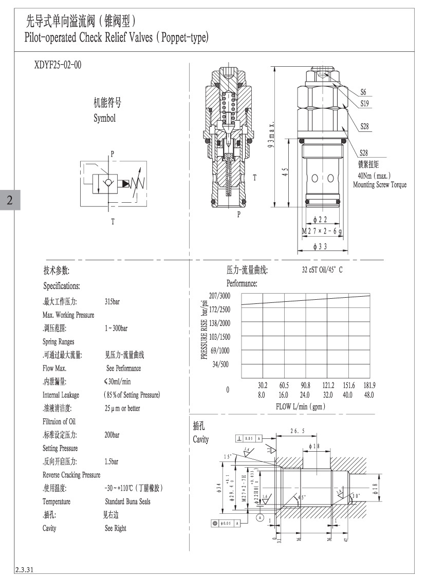 先导单向式溢流阀